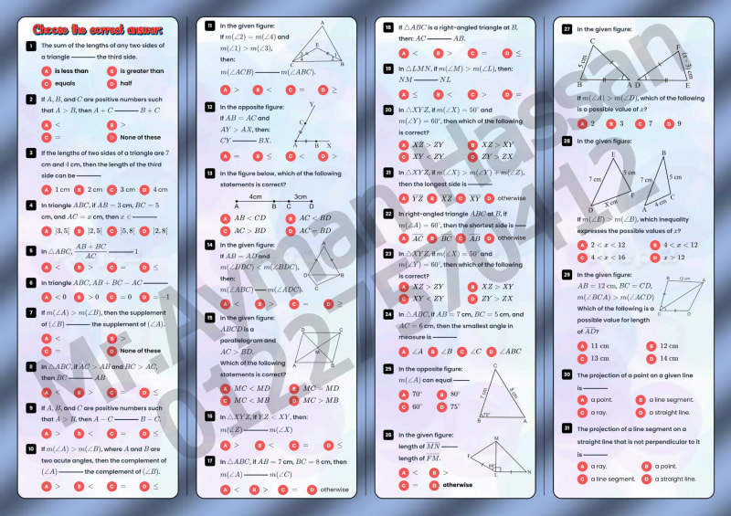 بنك الأسئلة الأهم مع الإجابات النموذجية. المطوية عبارة عن 4 ورقات A3 بصيغة PDF. لن يخرج عنها أي امتحان في الماث. السعر 50 جنيه فقط. للطلب والتسليم الفوري، تواصل عبر واتساب.